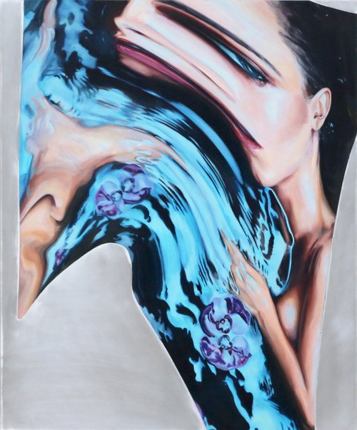 Silver flow, oil paint on aluminum composite, 30 x 40 cm. 2017