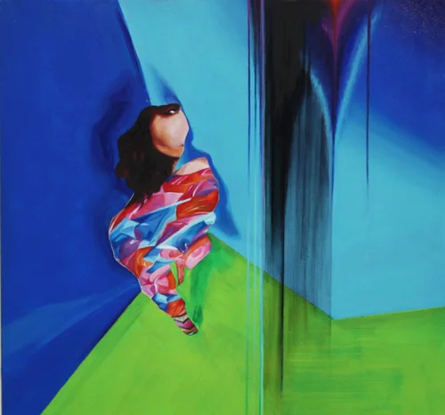 When she realises she is under glass, acrylic and oil paint on composite board, 122 cm x 60 cm. 2013