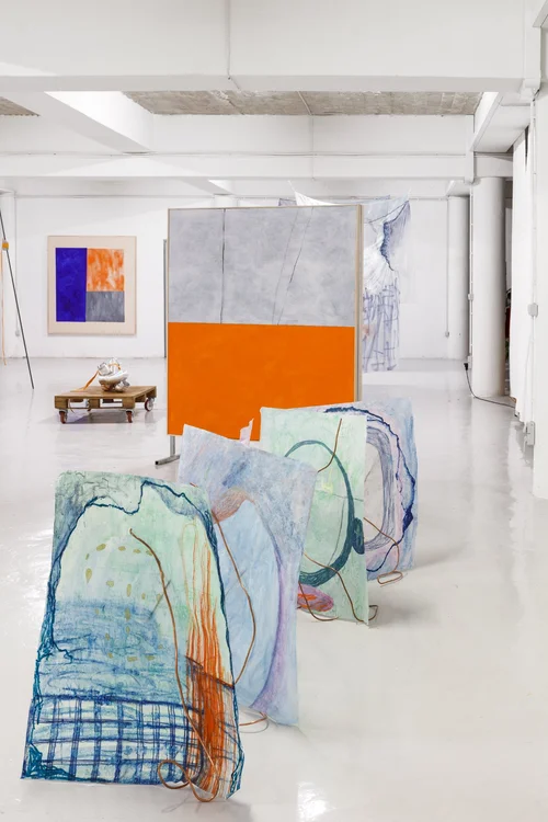 Liquidity, painting, drawing, collage installation project. Installed at Frappant Galerie, Hamburg Germany. August 2019. The exhibition was a culmination of a one year studio residency at the Frappant artists house.